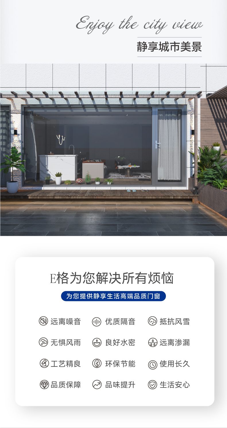 E格靜然120S推拉窗斷橋鋁合金隔斷封陽臺(tái)隔音隔熱門窗